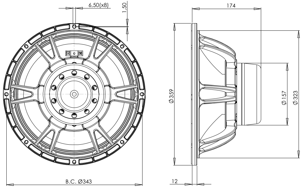 Recommended Enclosure: 60 dm³ (2.12 ft³)