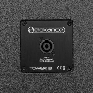 Professional sound system elokance Tower 18, equipped with a 46 cm subwoofer and a column equipped with 5 speakers. This system has a maximum output of 141 dB, for a total power of 3400 W max.
