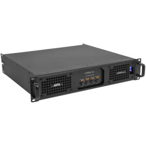 HPA Hybrid-4C – new technology hybrid power amplifier. Professional sound and installation amplifier combining low impedance and 100 V: 4x 400 W RMS / 8 ohms, 4x 800 W RMS / 4 ohms. Possible bridge use: 2x 1,500 W under 8 ohms / 100 V. Integrated ventilation and limiter