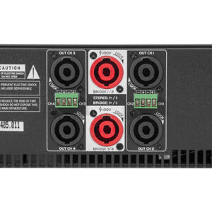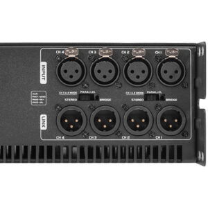 The amplifier features convenient XLR inputs and secure speakON and Euroblock outputs, ensuring seamless integration into any professional audio setup. The unit offers three operating modes: stereo, parallel, and bridge, adding flexibility for different configurations. Built-in electronic, thermal, and electrical protections guarantee reliability even under demanding conditions.