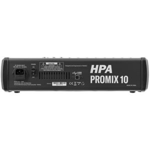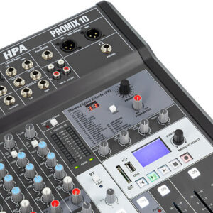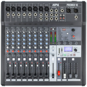 The HPA Promix 10 is an analogue mixing console that redefines the standards of professional sound reinforcement. Featuring 10 channels and a multi-effects processor, it offers a full range of sonic possibilities, from podcasting to live performances.