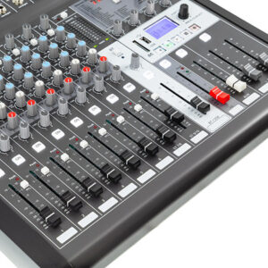 The unit is rich in features, including 8 linear faders and various inputs such as MIC, line, and stereo, allowing you to mix with precision and flexibility. The precision engineering is also evident in its technical specifications: a frequency response of 20 Hz to 20 kHz and minimal distortion of 0.005% ensure unparalleled audio fidelity.