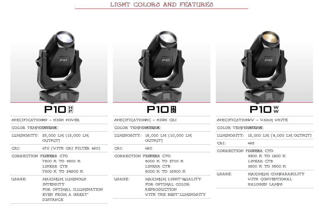 The P10 Wash with a zoom range of 12° – 70° and its 330W LED power is the perfect size for any stage. It is available in three light colors and is also very compact, luminous and extremely quiet. It makes no difference which of its many features are used in the P10 Wash.